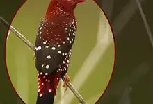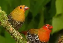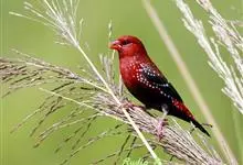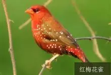 红梅花雀小型鸟类,体长9-10厘米。雄鸟通体朱红色,背、肩、胸等满布白色小斑点,两翅和尾黑褐色均具白色端斑,嘴红色,脚蜡黄色。雌鸟上体淡褐色或赭褐色,翅上中覆羽、大覆羽和内侧飞羽末端具白色斑点,…全部>>