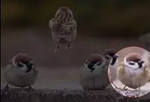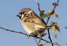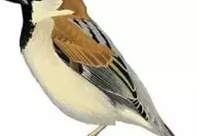 家麻雀:共有13个亚种。是小型鸟类,体长14-16厘米。背栗红色具黑色纵纹,两侧具皮黄色纵纹;颏、喉和上胸黑色,脸颊白色,其余下体白色,翅上具白色带斑。雄鸟与树麻雀的区别在顶冠及尾上覆羽灰色,耳无黑…全部>>