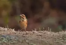 栗斑腹鹀:属小型鸣禽。体重19-25克,体长145-167毫米。头顶至背栗红色,眼先和颧纹黑褐色,黑色颧纹上还有一白纹,耳羽褐色或灰褐色,眉纹白色或灰白色。背、肩具黑色纵纹,腰至尾上覆羽砖红色无纵纹,…全部>>