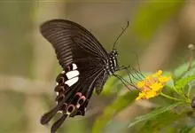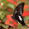 玉斑凤蝶Papilio helenus 别名白纹凤蝶,是凤蝶科凤蝶属美凤蝶亚属大型种类。雌雄同型;体翅皆黑色,后翅正面中室外有3个并列的白色斑,亚外缘有1列模糊的新月形红色斑,…全部>>