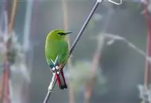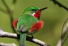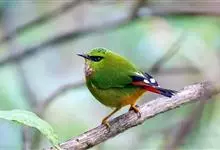 火尾绿鹛是莺科、绿鹛属小型鸟类,体长11-14厘米。上体绿色,头顶至枕具黑色鳞状斑,眼先和眼后黑色,眉纹黄绿色。两翅黑色具黄色和红色翅斑及白色端斑,极为醒目。中央一对尾羽绿色,外侧尾羽鲜红色。…全部>>