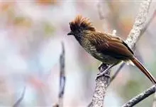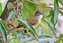 条纹噪鹛是画眉科、噪鹛属中型鸟类,体长28-32厘米。头具短的羽冠,上体栗褐色,飞羽外翻蓝灰色。下体棕栗色,腹以后转为褐白色。除飞羽和尾羽外,所有上、下体羽均具白色羽干纹。极为醒目。野外特征明显,…全部>>