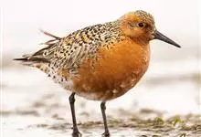 红腹滨鹬,是鹬科、滨鹬属的小型涉禽,体长23-25厘米,嘴较短而直、黑色,脚亦甚短、绿色。体较粗胖。夏季上体灰褐色具黑色中央纹,背具棕栗色和白色斑纹和羽缘,头侧和整个下体栗红色。冬季棕红色消失,…全部>>