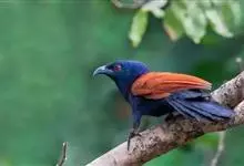 褐翅鸦鹃,是鹃形目鸦鹃科鸦鹃属的鸟类。褐翅鸦鹃的身体为黑色;头颈和胸带蓝紫色金属光泽并具黑亮的羽干纹,下胸至腹部泛金属绿光泽;两翼和肩部为棕栗色,外侧飞羽具暗色羽端,尾羽闪铜绿色光泽;虹膜赤红色,…全部>>