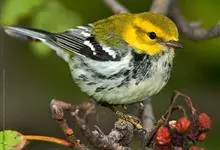 极北柳莺:体长11-13厘米,体小偏灰橄榄色,具明显的黄白色长眉纹,眼先及过眼纹近黑。上体概呈灰橄榄绿色;具甚浅的白色翼斑,大覆羽先端黄白色,形成一道翅上翼斑;中覆羽羽尖成第二道模糊的翼斑;下体白色…全部>>