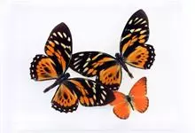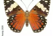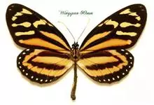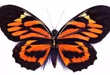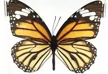 黑脉金斑蝶:翅阔8.6-12.4厘米。雄蝶较雌蝶为大。成年蝶颜色鲜艳,翅膀上有显眼的橙色及黑色斑纹,周围是宽阔的黑色边框,布有许多白色斑点。这种引人注目的着色是对捕食者的视觉警告,表示这个物种有毒;…全部>>