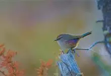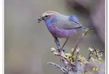 花彩雀莺:体长9-12厘米,是一种毛茸茸偏紫色的雀莺。顶冠棕色,眉纹白。尾长,羽毛松软。前额有一宽阔的眉纹淡黄色,头顶栗色或棕红色,有的具紫蓝色光泽。背灰色,腰和尾上覆羽辉紫蓝色,飞羽灰褐色。…全部>>