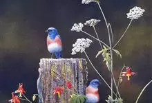 凤头雀莺:小型鸟类。体长9-10厘米,雄鸟呈毛茸茸的紫色和绛紫色,顶冠淡紫灰色,额及凤头白色,尾全蓝。雌鸟喉及上胸白,至臀部渐变成淡紫色,耳羽灰,…全部>>