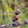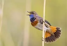 蓝点颏亦称“蓝喉歌鸲”,通称蓝靛颏儿。身体大小和麻雀相似,体长12-13厘米,体重17-18克。头部、上体主要为土褐色。眉纹白色。尾羽黑褐色,基部栗红色。颏部、喉部辉蓝色,下面有黑色横纹。下体白色。…全部>>
