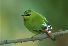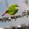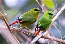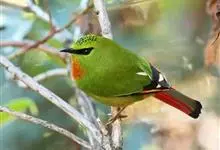 火尾绿鹛是莺科、绿鹛属小型鸟类,体长11-14厘米。上体绿色,头顶至枕具黑色鳞状斑,眼先和眼后黑色,眉纹黄绿色。两翅黑色具黄色和红色翅斑及白色端斑,极为醒目。中央一对尾羽绿色,外侧尾羽鲜红色。…全部>>