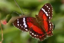黑脉金斑蝶:翅阔8.6-12.4厘米。雄蝶较雌蝶为大。成年蝶颜色鲜艳,翅膀上有显眼的橙色及黑色斑纹,周围是宽阔的黑色边框,布有许多白色斑点。这种引人注目的着色是对捕食者的视觉警告,表示这个物种有毒;…全部>>