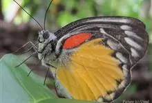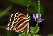 虎斑蝶,Danaus genutia ,是斑蝶属的一种,常见于湿地公园内。雄性虎斑蝶经常伏于吊裙草 上吸食汁液,以制造吸引异性的香气。虎斑蝶翅膀腹面鲜橙色,翅脉和翅边缘黑色,边缘上有两行小白点,…全部>>