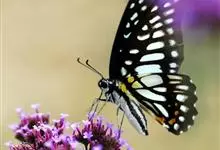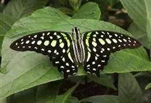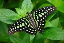 碎斑青凤蝶是凤蝶科、青凤蝶属昆虫。体背面黑色,具绿毛,腹面淡白色。翅黑褐色,斑纹淡绿色或浅黄色;前翅中室有5个斑纹排成1列;后翅基半部有5-6个大小不同的纵斑。后翅亚外缘的斑列加宽,…全部>>