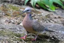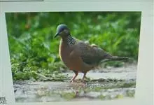 珠颈斑鸠,别名花斑鸠、珍珠鸠、花脖斑鸠、鸪鹪,是鸠鸽科副斑鸠属鸟类。体型中等,体长27~34cm,体重120~205g,雌鸟和雄鸟羽色相似,但雌鸟不如雄鸟羽色亮泽。珠颈斑鸠前额至头顶羽色稍淡,…全部>>
