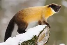 黄喉貂,是食肉目鼬科陆栖食肉类动物,又名青鼬、密狗、黄猺。体长小而轻;吻尖耳大;四肢短;爪发达;尾圆柱状;冬季毛被色泽鲜艳,吻端至颈背部黑褐色,下颏白色并向后延伸至耳下,…全部>>