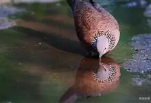 珠颈斑鸠,别名花斑鸠、珍珠鸠、花脖斑鸠、鸪鹪,是鸠鸽科副斑鸠属鸟类。体型中等,体长27~34cm,体重120~205g,雌鸟和雄鸟羽色相似,但雌鸟不如雄鸟羽色亮泽。珠颈斑鸠前额至头顶羽色稍淡,…全部>>