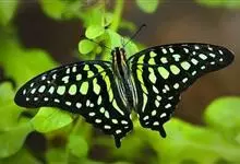 碎斑青凤蝶是凤蝶科、青凤蝶属昆虫。体背面黑色,具绿毛,腹面淡白色。翅黑褐色,斑纹淡绿色或浅黄色;前翅中室有5个斑纹排成1列;后翅基半部有5-6个大小不同的纵斑。后翅亚外缘的斑列加宽,…全部>>