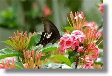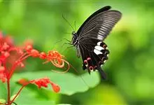 玉斑凤蝶Papilio helenus 别名白纹凤蝶,是凤蝶科凤蝶属美凤蝶亚属大型种类。雌雄同型;体翅皆黑色,后翅正面中室外有3个并列的白色斑,亚外缘有1列模糊的新月形红色斑,…全部>>