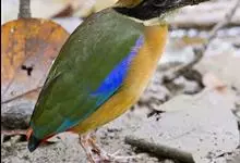 蓝翅八色鸫是雀形目八色鸫科的鸟类。体长17-20厘米,体重类约48-70克,体型圆胖,尾短,腿长,以身体具有红、绿、蓝、白、黑、黄、褐、栗等鲜艳夺目,丰富艳丽的色彩而得名,是很有观赏价值的鸟类。主要…全部>>