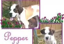 圣伯纳犬,别名巴里汉德,属于大型工作犬,肩高约65~90厘米,体重约50~90千克。圣伯纳犬身体强壮,被毛红褐色和白色相间,头圆而宽大。颈部强壮,胸宽深,背直。前肢长直,腕关节略前倾,后肢腿骨粗壮,…全部>>
