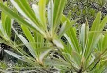 海南杜英,属杜英科杜英属的常绿小乔木。树冠整齐成层,枝条无毛。叶子聚集在顶端生长,狭披针形或倒披针形,长7~15cm,宽1.4~2.8cm,叶柄长1~2厘米。全部>>
