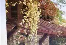 黄木香花 Rehd.)是蔷薇科、蔷薇属植物,为木香花的变型品种,攀缘小灌木,高可达6米。小叶3-5枚,稀7枚,小叶片椭圆形或长圆状披针形,先端急尖或稍钝,基部近圆形或宽楔形,边缘有紧贴细锯齿。花小型,…全部>>