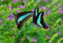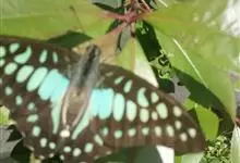 青带凤蝶Graphium sarpedon ,又名青凤蝶,是最普遍的中型凤蝶,飞行速度很快。青带凤蝶的翅膀中央有许多浅蓝色的斑点,很整齐地排列成一条直线。这些斑点由上而下逐渐变大,就像一条青色的带子。全部>>