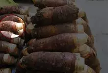 木薯,为大戟科木薯属的一种直立灌木,又名木番薯、树薯。木薯高1.5-3米;块根圆柱状。叶纸质,轮廓近圆形;裂片倒披针形至狭椭圆形;托叶三角状披针形。圆锥花序顶生或腋生,花萼带紫红色且有白粉霜。…全部>>
