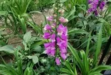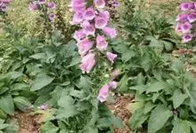 毛地黄是车前科、毛地黄属一年生或多年生草本植物。株高0.5—1米,茎直立,少分枝,全株被灰白色短柔毛和腺毛叶基生,呈莲座状,卵圆形或卵状披针形。顶生总状花序,花冠钟状,紫红色,内面有浅白斑点。菊果卵形。…全部>>