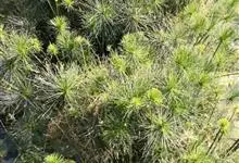 纸莎草是莎草科、莎草属的植物,具有粗壮的根状茎,高达2-3米,茎秆簇生,粗壮,直立,钝三棱形。叶退化呈鞘状,茎秆顶端着生总苞片,呈伞状簇生,总苞片叶状,披针形,顶生花序伞梗极多,细长下垂。瘦果灰褐色,…全部>>