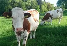 西门塔尔牛是偶蹄目牛科牛属哺乳动物。 体躯长,呈圆筒状,肌肉丰满;头较长,面宽,颈长中等,角较细而向外上方弯曲,尖端稍向上;前躯较后躯发育好,胸深,尻宽平,四肢结实,大腿肌肉发达,乳房发育好。…全部>>