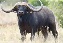 非洲野水牛:共有5个亚种。头体长2.1-3.4米,身高1-1.7米,体重300-900千克。胸膛宽阔,四肢粗壮,头大角长,雄性的角从头部向外和向下扩散,在一些雄性中,角通过覆盖头部的大盾连接。头顶的…全部>>