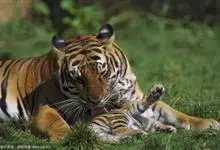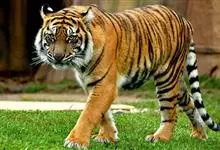 印度支那虎:简称印支虎。是老虎的一个亚种。雄性平均体重185千克,体长2.7米。与孟加拉虎相比,它们的体形较小,毛色更深,身上的条纹更短、更窄;而胃部、咽喉和两颊有较大的白色斑痕。…全部>>