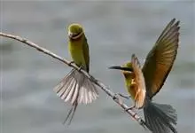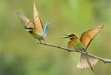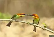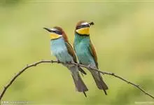 蓝颊蜂虎:是蜂虎科、蜂虎属的鸟类,共有2个亚种。体长27-33厘米,翼展46-49厘米,体重38-50克。嘴形细长而下弯,先端尖,…全部>>
