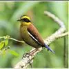 黄喉蜂虎属中型鸟类,体长23-30厘米。喉黄色,其下有一窄的黑色胸带;胸带以下的整个下体蓝绿色。前额蓝白色,具一宽的黑色贯眼纹,头顶至后颈暗栗色,尾蓝绿色,中央尾羽延长,明显突出于其他尾羽。…全部>>