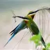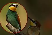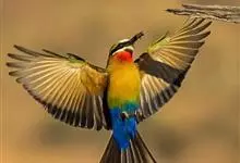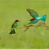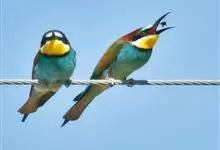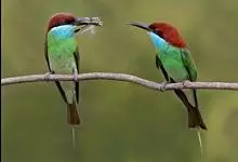 蓝颊蜂虎:是蜂虎科、蜂虎属的鸟类,共有2个亚种。体长27-33厘米,翼展46-49厘米,体重38-50克。嘴形细长而下弯,先端尖,…全部>>
