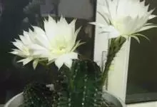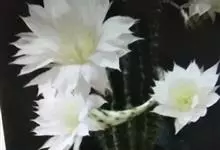 仙人球花 仙人掌科,仙人球属。植株单生或成丛。幼株球形,老株长成圆筒状,高可达75厘米,直径12-15厘米。球体暗绿色,具棱11-12。刺锥状,黑色,长1-1.5厘米。花着生于球体侧方,大型嗽喇叭状…全部>>