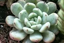 星美人是景天科、厚叶莲属多年生多浆肉质草本植物。植株具直立的短茎。叶12-20片互生,排列呈延长的莲座状,肉质,倒卵形,长2-4厘米,宽2-2.5厘米,厚2厘米,先端平滑钝圆,…全部>>