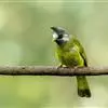 凤头雀嘴鹎:属小型鸟类,体长18-22厘米。嘴粗短、呈象牙色或乳黄色,前额和脸灰色,头顶黑色,有一朝前竖立的黑色羽冠。上体橄榄绿色,下体黄绿色,尾羽黄绿色具宽阔的黑褐色端斑。…全部>>