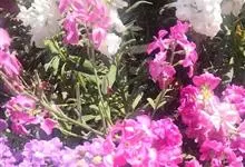 紫罗兰 W.T.Aiton)是十字花科紫罗兰属植物。二年生或多年生草本。植株高60厘米,布满灰白色的分枝柔毛;茎直立,多分枝,基部稍木质化;叶片为长圆形、倒披针形或匙形;总状花序顶生和腋生;花多数,…全部>>