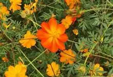 黄秋英是菊科秋英属的一年生草本植物。枝叶为对生的二回羽状复叶,裂片呈披针形;花为舌状花,有单瓣和重瓣两种,颜色多为黄、金黄、橙色,红色;瘦果棕褐色,粗糙有毛,顶端有细长喙;春播花期6-8月,…全部>>