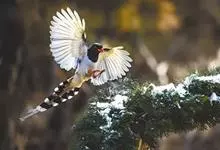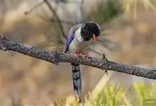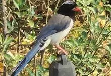 红嘴蓝鹊,别名山鹊、长尾鹊,是鸦科蓝鹊属的一种观赏性较强的大型鸣禽。该物种为体长54~65cm,头、颈、喉和胸黑色,头顶至后颈有一块白色至淡蓝白色或紫灰色块斑,其余上体紫蓝灰色或淡蓝灰褐色。尾长呈凸状,…全部>>