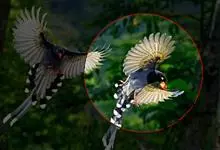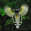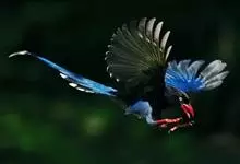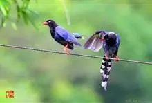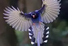 台湾蓝鹊:体长64至65厘米,翼展18至21厘米,尾长约40厘米,尾羽长占了总体长的三分之二。头、脸、颈、喉、胸都是黑色,黄色的眼珠包围黑色的瞳孔,鲜红色的鸟喙、双脚,…全部>>