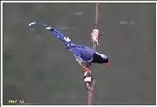 红嘴蓝鹊,别名山鹊、长尾鹊,是鸦科蓝鹊属的一种观赏性较强的大型鸣禽。该物种为体长54~65cm,头、颈、喉和胸黑色,头顶至后颈有一块白色至淡蓝白色或紫灰色块斑,其余上体紫蓝灰色或淡蓝灰褐色。尾长呈凸状,…全部>>
