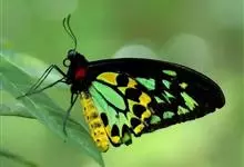 金裳凤蝶是凤蝶科、裳凤蝶属的动物。金裳凤蝶身体呈黑色,头、颈和胸侧有红毛,腹部有黑黄两色相间条纹,雄蝶前翅黑色,具黑天鹅绒光泽,各脉两侧灰白色,后翅金黄色,各室外缘有等腰三角形黑斑1枚,斑内侧有晕,…全部>>