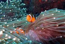 小丑鱼是鲈形目雀鲷科小丑鱼属鱼类的统称。体长仅5—6厘米。身体色彩艳丽,多为红色、橘红色;除透明的胸鳍与软背鳍鳍条外部,其余鳍均为黑色。体形怪异,体色多变,通常体侧有白色条纹。…全部>>