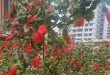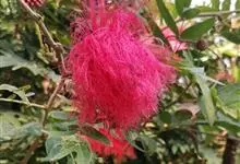 红千层是桃金娘科红千层属的常绿小乔木植物。红千层树皮坚硬,灰褐色,嫩枝有棱,初时有长丝毛,不久变无毛;叶片坚革质,线形;穗状花序生于枝顶,花瓣绿色,卵形,雄蕊鲜红色,花药暗紫色,…全部>>