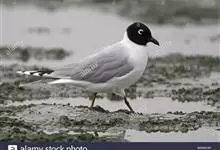 黑嘴鸥 中型水鸟,体长31~39厘米。嘴黑色,脚红色。夏羽头黑色,眼上和眼 下具白色星月形斑,在黑色的头上极为醒目。颈、腰、尾上覆羽、尾和下体白色。初级飞羽末端具黑色斑点。翼下仅部分初级飞羽黑色,与…全部>>