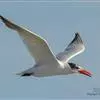 红嘴巨鸥,大型水鸟,体长47~55厘米。夏羽前额、头顶、枕和冠羽黑色。后颈、尾上覆羽和尾白色,尾呈叉状。背、肩和翅上覆羽银灰色。眼先和眼及耳羽以下头侧白色;颏、喉和整个下体也为白色。冬羽和夏羽大致相似,…全部>>