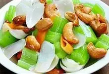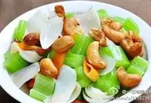 西芹炒腰果是一道由西芹,熟腰果,胡萝卜等做成的美食。全部>>